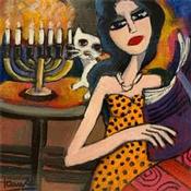 This unique and original contemporary artwork "La liseuse et son chat" on the subjects of Portrait, Life style has been created by the contemporary artist Fauve.