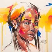 This unique and original contemporary artwork "Efigenia" on the subject of Portrait has been created by the contemporary artist Istraille.