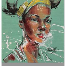 This unique and original contemporary artwork "Safia" on the subject of Portrait has been created by the contemporary artist Istraille.