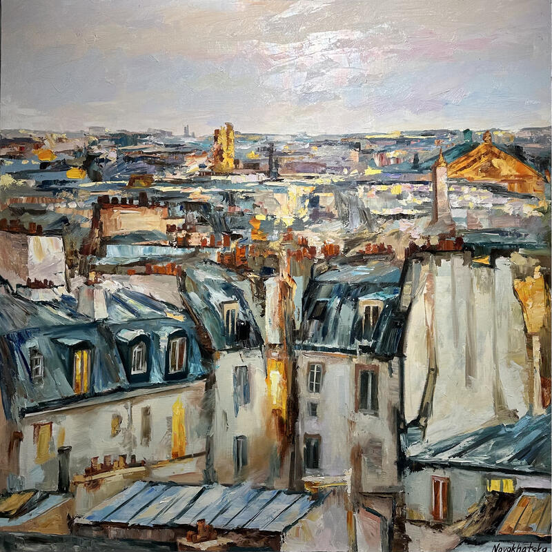 This unique and original contemporary artwork "Les toits de Paris" on the subject of Urban has been created by the contemporary artist Novokhatska Olga.