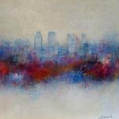This unique and original contemporary artwork "Blissful Skyline" on the subject of Urban has been created by the contemporary artist Coupette Steffi.