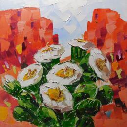 This unique and original contemporary artwork "Saguaro and Red Rocks" has been created by the contemporary artist Lunetskaya Elena.