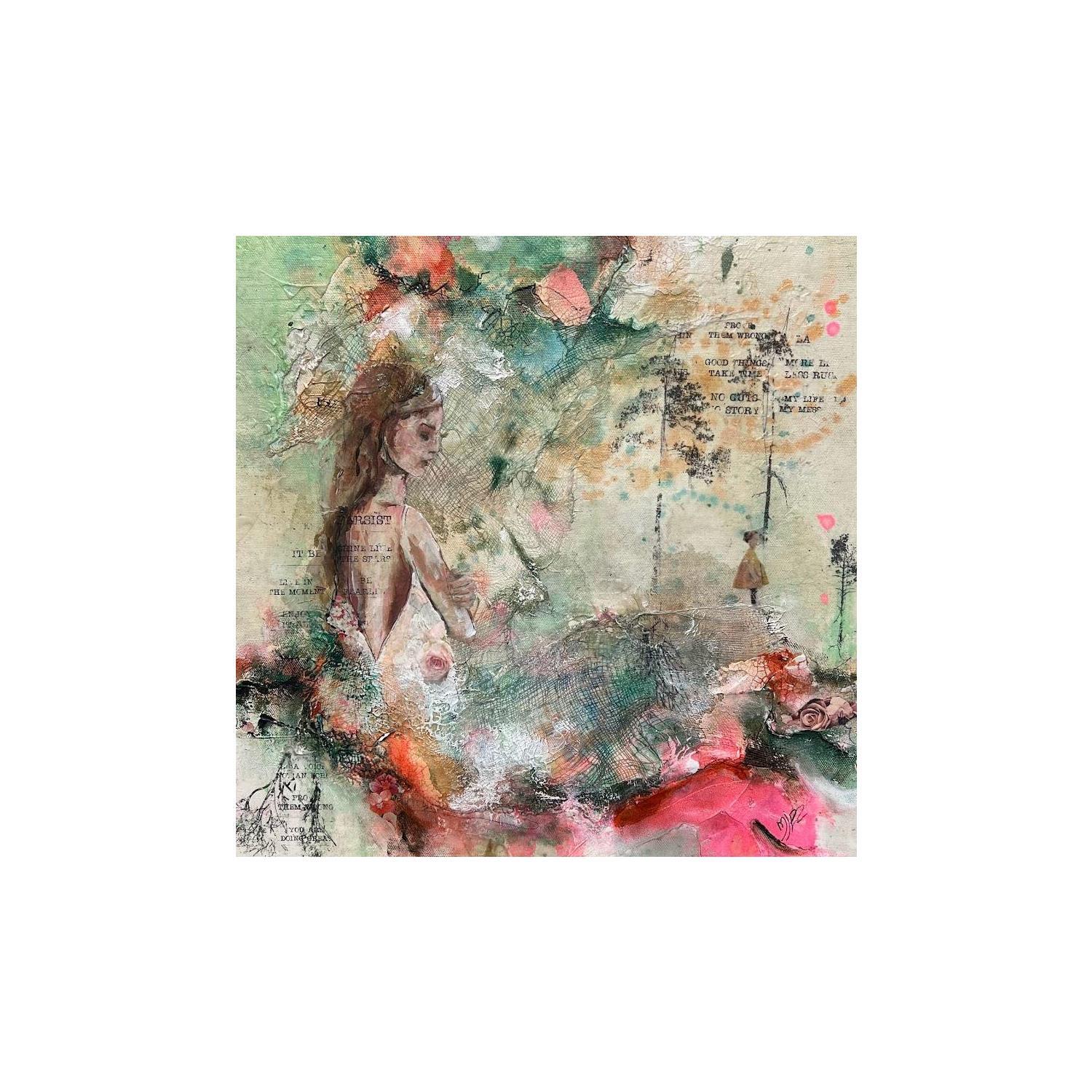 The artist used Cardboard, Oil, Gluing, Acrylic media on Cardboard to create this Figurative, Small size painting.