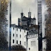This unique and original contemporary artwork "La nuit à Lyon" on the subjects of Architecture, Black & White, Urban has been created by the contemporary artist Rey Julien.
