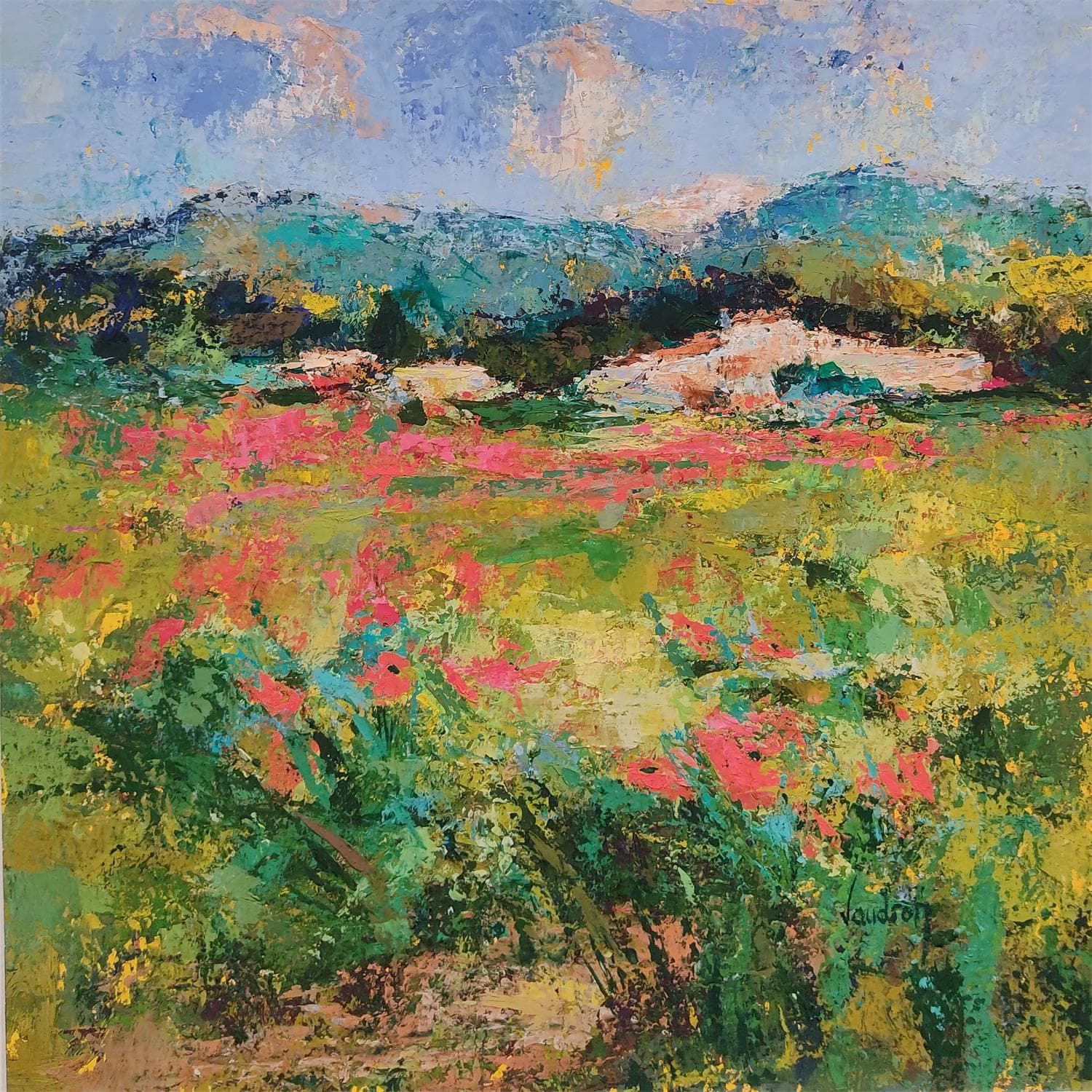 This unique and original contemporary artwork "De nouveau le printemps à Lourmarin" on the subject of Landscapes has been created by the contemporary artist Vaudron.