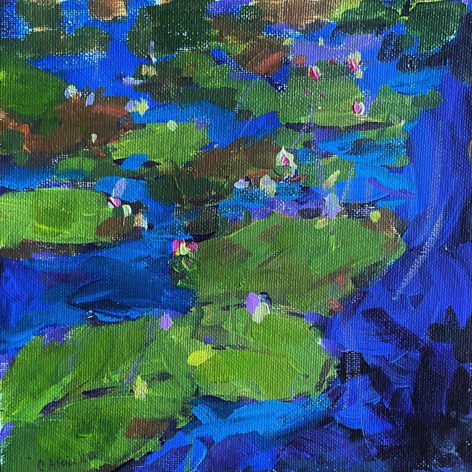 This unique and original contemporary artwork "Fragrant Lily Pond" on the subjects of Landscapes, Nature has been created by the contemporary artist Carrillo Cindy .