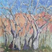 This unique and original contemporary artwork "Sycamore Forest" on the subject of Landscapes has been created by the contemporary artist Carrillo Cindy .