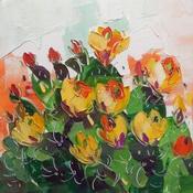 This unique and original contemporary artwork "Prickly Pear Cactus Flowers" has been created by the contemporary artist Lunetskaya Elena.