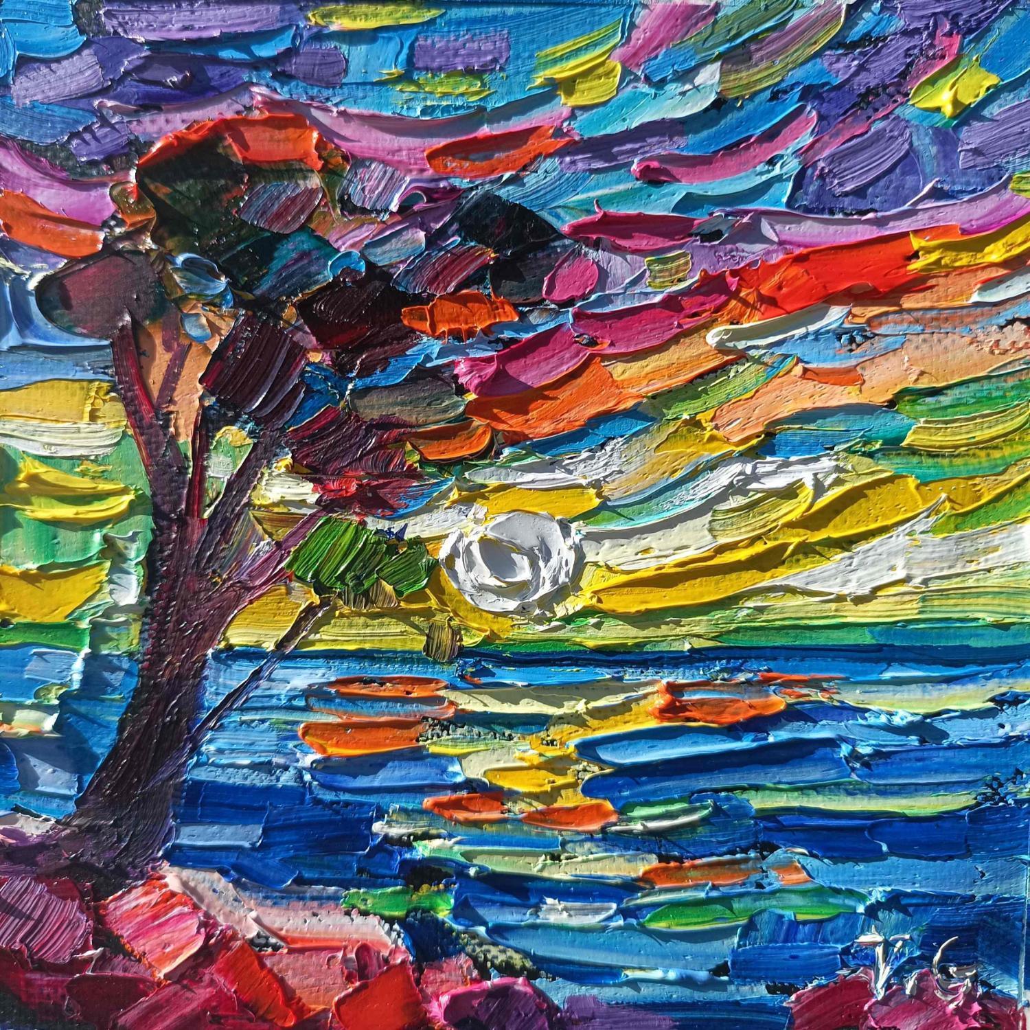 This unique and original contemporary artwork "Tree on sea" on the subject of Landscapes has been created by the contemporary artist Georgieva Vanya.