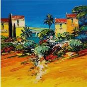 This unique and original contemporary artwork "Maisons dans la rade de Villefranche" on the subject of Landscapes has been created by the contemporary artist Corbière Liisa.