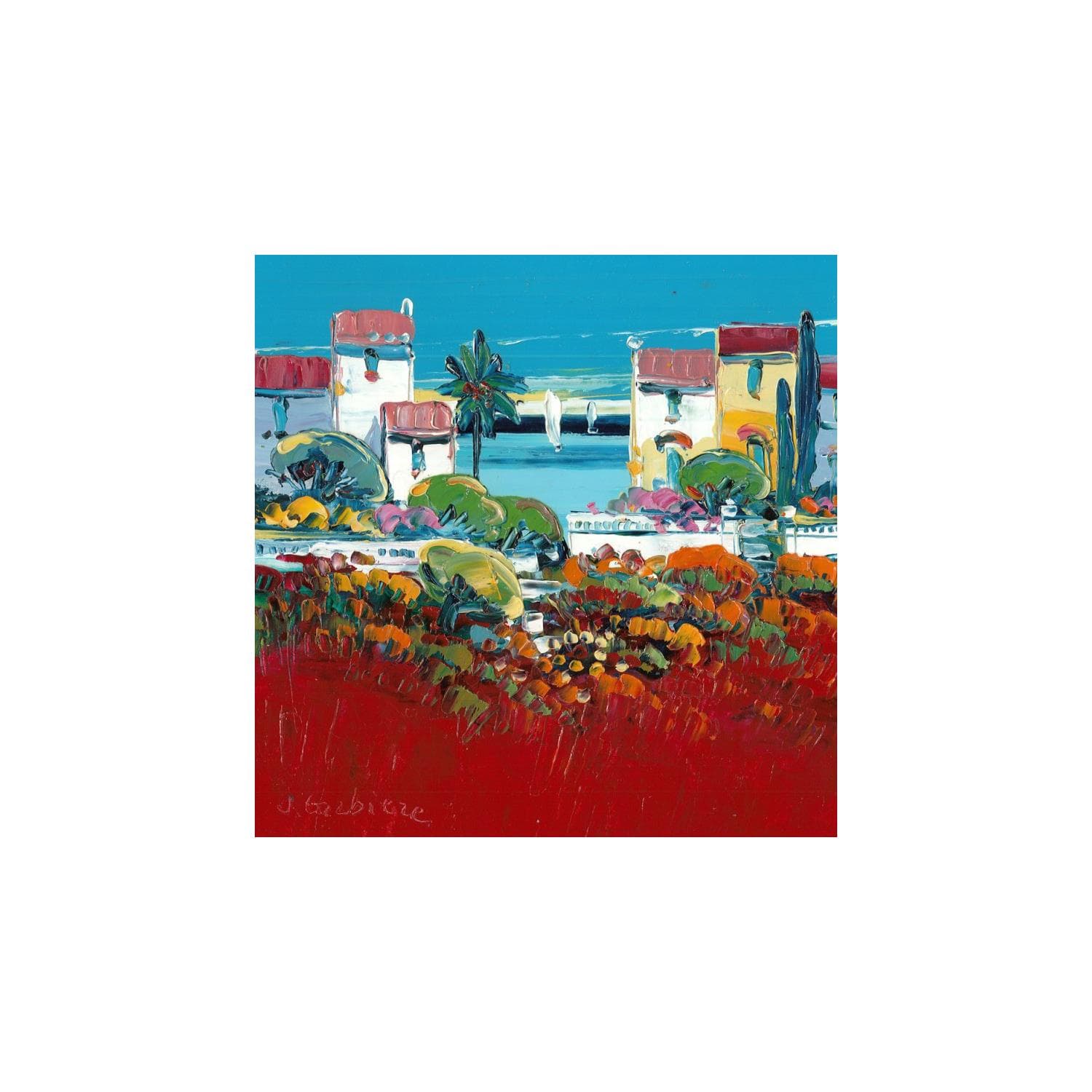 The contemporary artwork Terrasses fleuries is a modern painting from the artist Liisa Corbière. This is a contemporary painting, unique and originale, Landscape style.