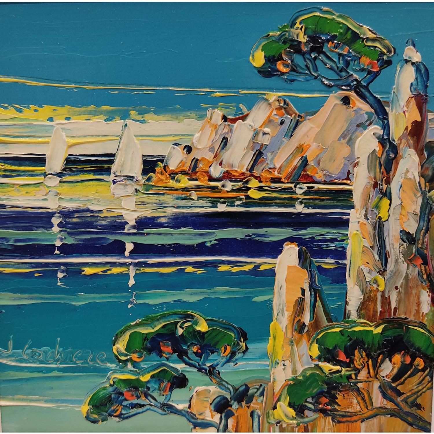 This unique and original contemporary artwork "Une journée dans les calanques" on the subject of Landscapes has been created by the contemporary artist Corbière Liisa.