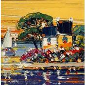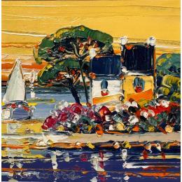 This unique and original contemporary artwork "Voile sur l'eau" on the subject of Landscapes has been created by the contemporary artist Corbière Liisa.