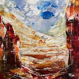 Set up in his workshop in Chambéry in Savoie department, Pierre has worked to produce his works since 2004. The French literature teacher, who has taught in several high schools in the Auvergne-Rhône-Alpes region for many years, chose to improve his knowledge by enrolling in a course dedicated to computer assisted creative techniques. Upon graduating in 2000, Pierre would integrate the IT service of a large company, which would allow him to earn his stripes in this new skill domain. A keen drawer since he was a child, the artist's attention has turned over the years to oil painting. Performing directly on the canvas support without any sketching beforehand, Pierre interprets the world around him from a multitude of colourful touches, composing his pictorial works "principally with volume, accumulations of volumes and nuances of shades that define at the same time perspective, horizon and motifs".