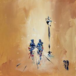 This unique and original contemporary artwork "Sous le lampadaire" on the subject of Life style has been created by the contemporary artist Raffin Christian.