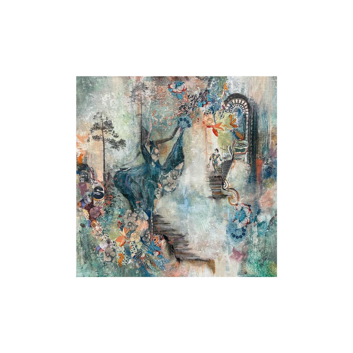 This unique and original contemporary artwork "Dance up to the air" on the subjects of Life style, Portrait has been created by the contemporary artist Bergeron Marie-Josée.