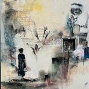 The artist used Oil, Acrylic media on Cardboard to create this Figurative, Small size painting.
