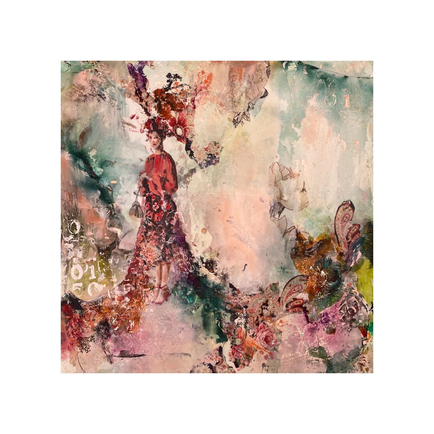 The artist used Oil, Gluing, Acrylic media on Paper to create this Figurative, Small size painting.