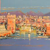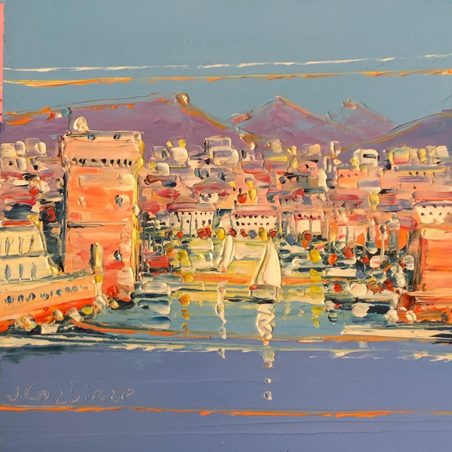 This unique and original contemporary artwork "Un matin à Marseille" on the subjects of Marine, Landscapes, Urban has been created by the contemporary artist Corbière Liisa.