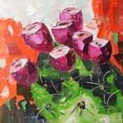 This unique and original contemporary artwork "Purple Prickly Pear" has been created by the contemporary artist Lunetskaya Elena.