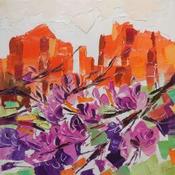 This unique and original contemporary artwork "Spring flowers in red rocks" has been created by the contemporary artist Lunetskaya Elena.
