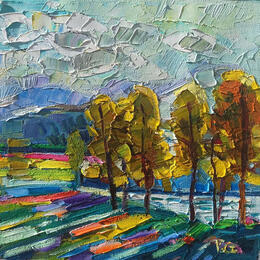 This unique and original contemporary artwork "Shadows and trees" on the subject of Landscapes has been created by the contemporary artist Georgieva Vanya.