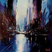 This unique and original contemporary artwork "Late night in the purple city" on the subjects of Portrait, Pop icons has been created by the contemporary artist Bond Tetiana.