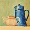 This unique and original contemporary artwork "Cafetière bleu" on the subject of still-life has been created by the contemporary artist Tognet.