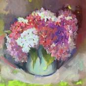 This unique and original contemporary artwork "Bouquet hortensias tricolore" was created by contemporary artist Morales Géraldine.