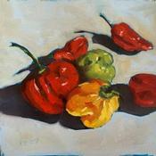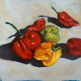 This unique and original contemporary artwork "les poivrons multicolores" on the subject of Still-life has been created by the contemporary artist Morales Géraldine.