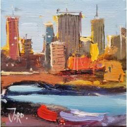 This unique and original contemporary artwork "Downtown view" on the subject of Urban has been created by the contemporary artist Joro.