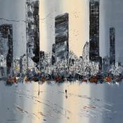 This unique and original contemporary artwork "Just a walk in the rain" on the subject of Urban has been created by the contemporary artist Rousseau Patrick.