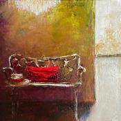 This unique and original contemporary artwork "Chapeau!" was created by contemporary artist Mezan de Malartic Virginie. The artist used the Oil technique to create this small-format painting on Canvas in the Figurative style.