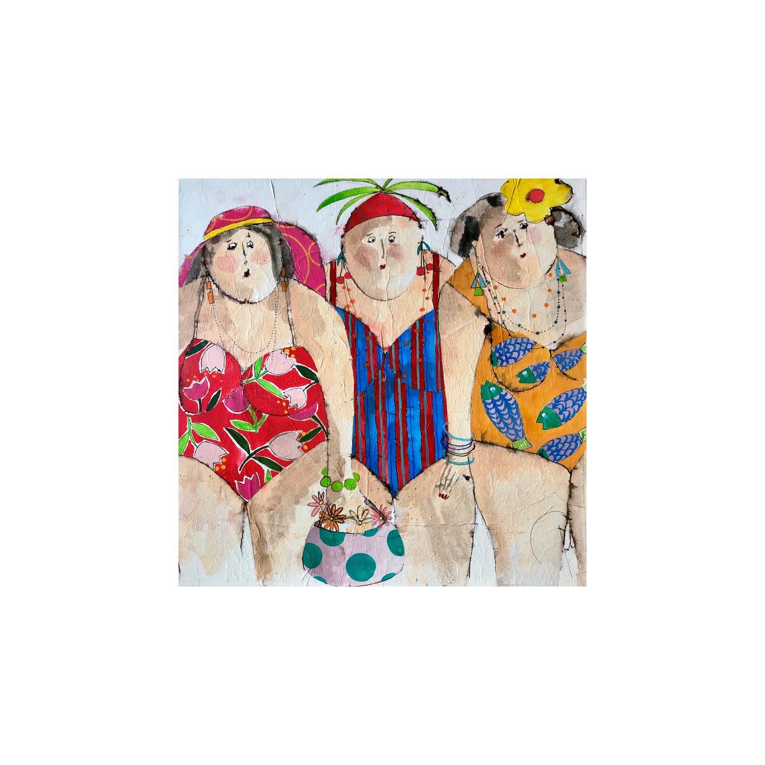 This unique and original contemporary artwork "martine charlotte zoe" on the subject of Portrait has been created by the contemporary artist Colombo Cécile.