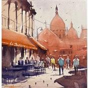 This unique and original contemporary artwork "The Morning Coffee" on the subjects of Landscapes, Urban, Life style has been created by the contemporary artist Dandapat Swarup.