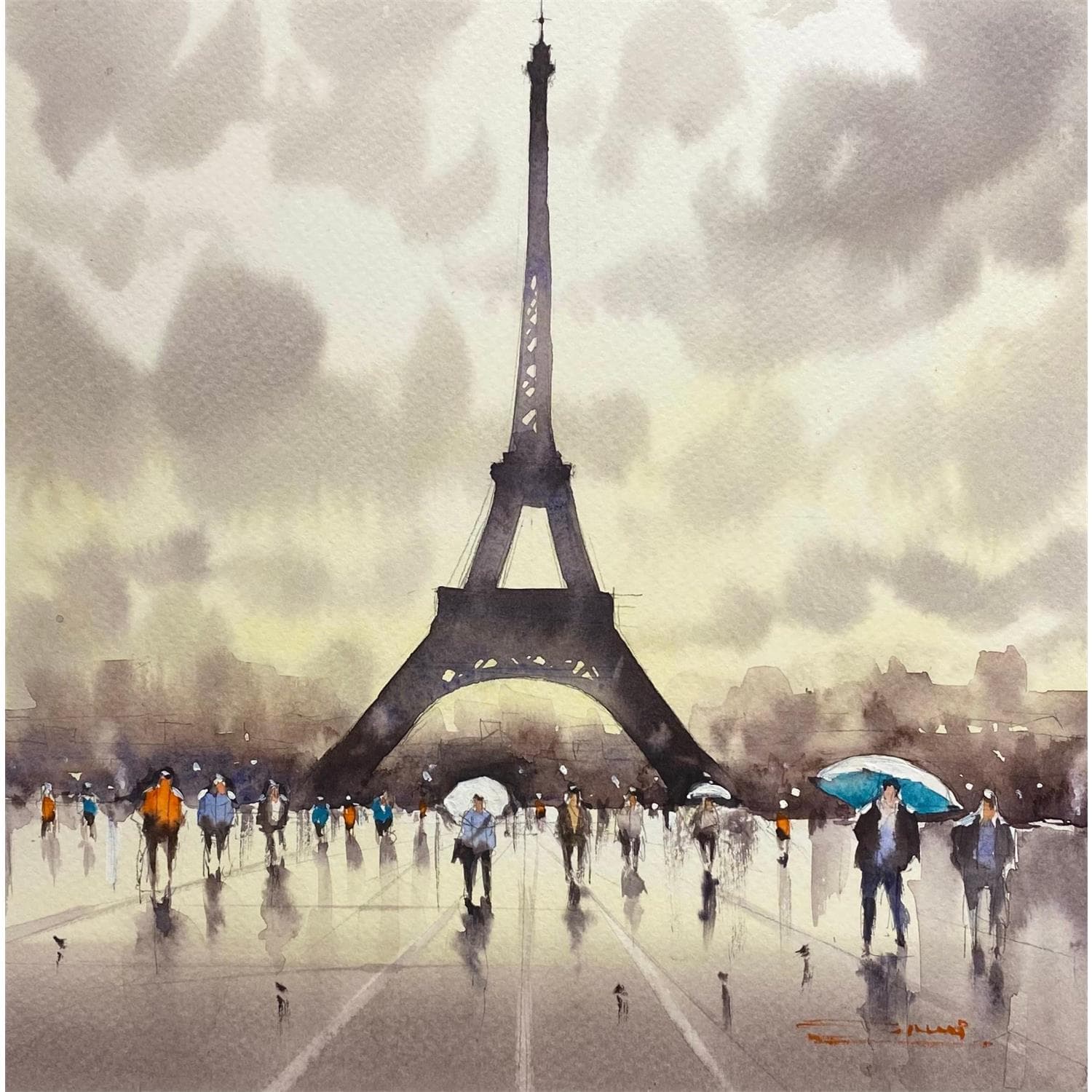 This unique and original contemporary artwork "Visiting the Tower on a Rainy Day" on the subjects of Landscapes, Urban, Life style has been created by the contemporary artist Dandapat Swarup.