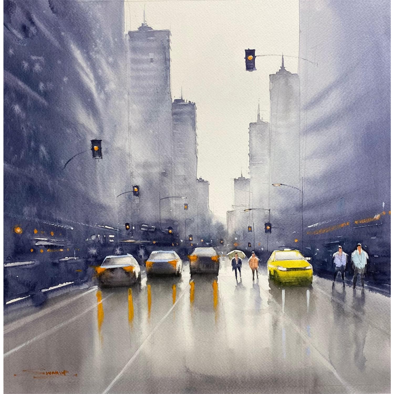 This unique and original contemporary artwork "A Misty New-York" on the subjects of Life style, Urban, Landscapes has been created by the contemporary artist Dandapat Swarup.