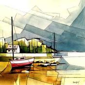 Marée basse 2 (mât rose)Painting Marée basse 2 (mât rose) by Langlois Jean-Luc | Painting Figurative Marine Watercolor