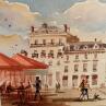 Painting Terrasse ensoleillée by De León Lévi Marcelo | Painting Figurative Urban Watercolor