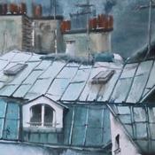 This unique and original contemporary artwork "au dessus des toits" on the subject of Urban has been created by the contemporary artist Abbatucci Violaine.