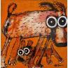 Herve grew up in the Southern Mediterranean region and nothing predestined him for an artistic career. He began his working life rather chaotically and carried out various professions before working in metallurgy for 8 years. It was only by chance that he began to paint. On moving house and decorating his apartment, he looked for art based on animals, but finding nothing, he began creating and decorating the walls with his own paintings. His family then discovered his talent and encouraged him to do become an artist. Various meetings and collaborations with decoration businesses gave Hervé the opportunity to paint freely and exhibit for the first time. He contributed to another artist’s ceramics work and the experience convinced him to embark on an artistic career. More fabulist than naturist, Hervé endows his animal characters with complexity, transforming the bestiary inherited from the medieval tradition, rock paintings and Far Eastern Art.