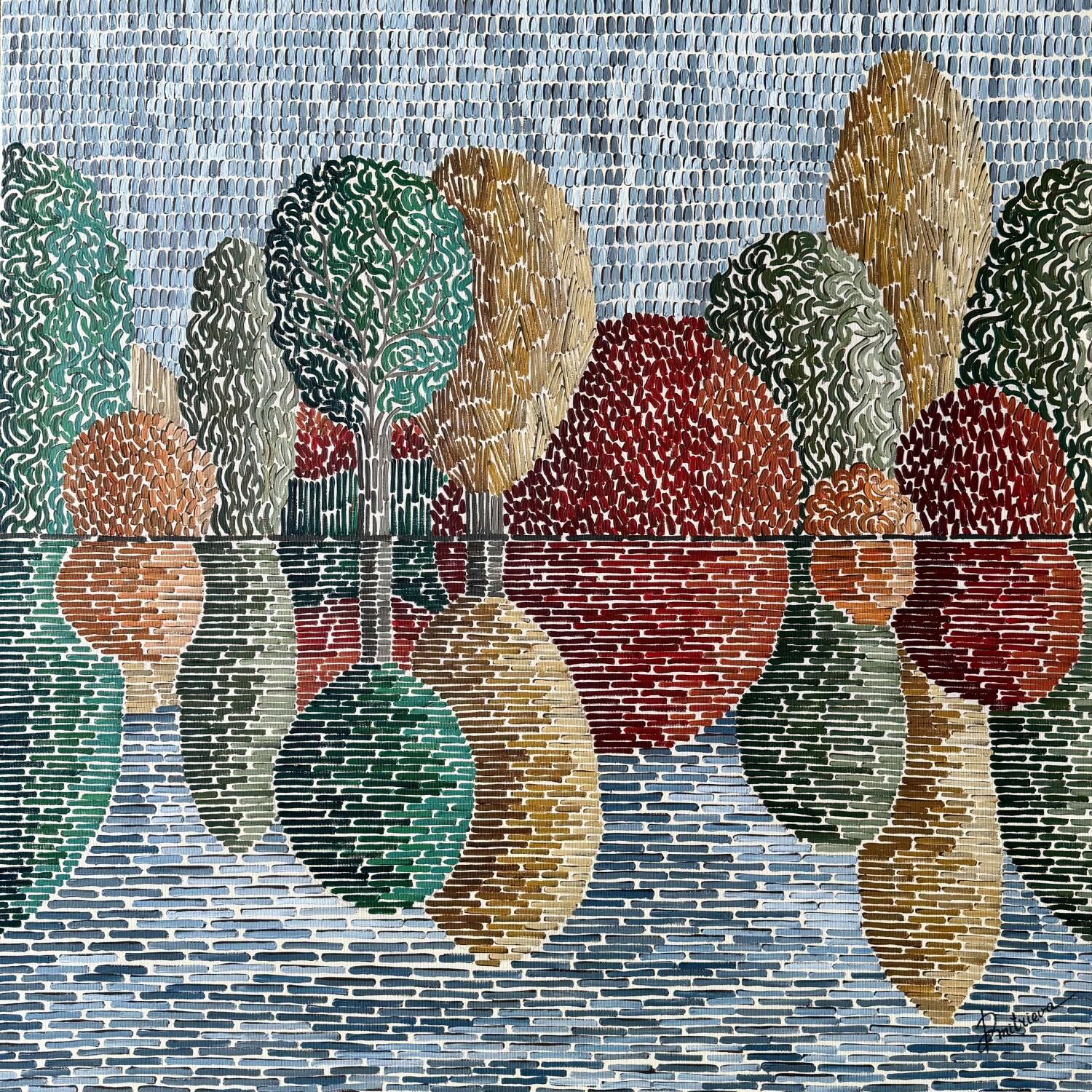 This unique and original contemporary artwork "autumn beyond the lake 2" has been created by the contemporary artist Dmitrieva Daria.