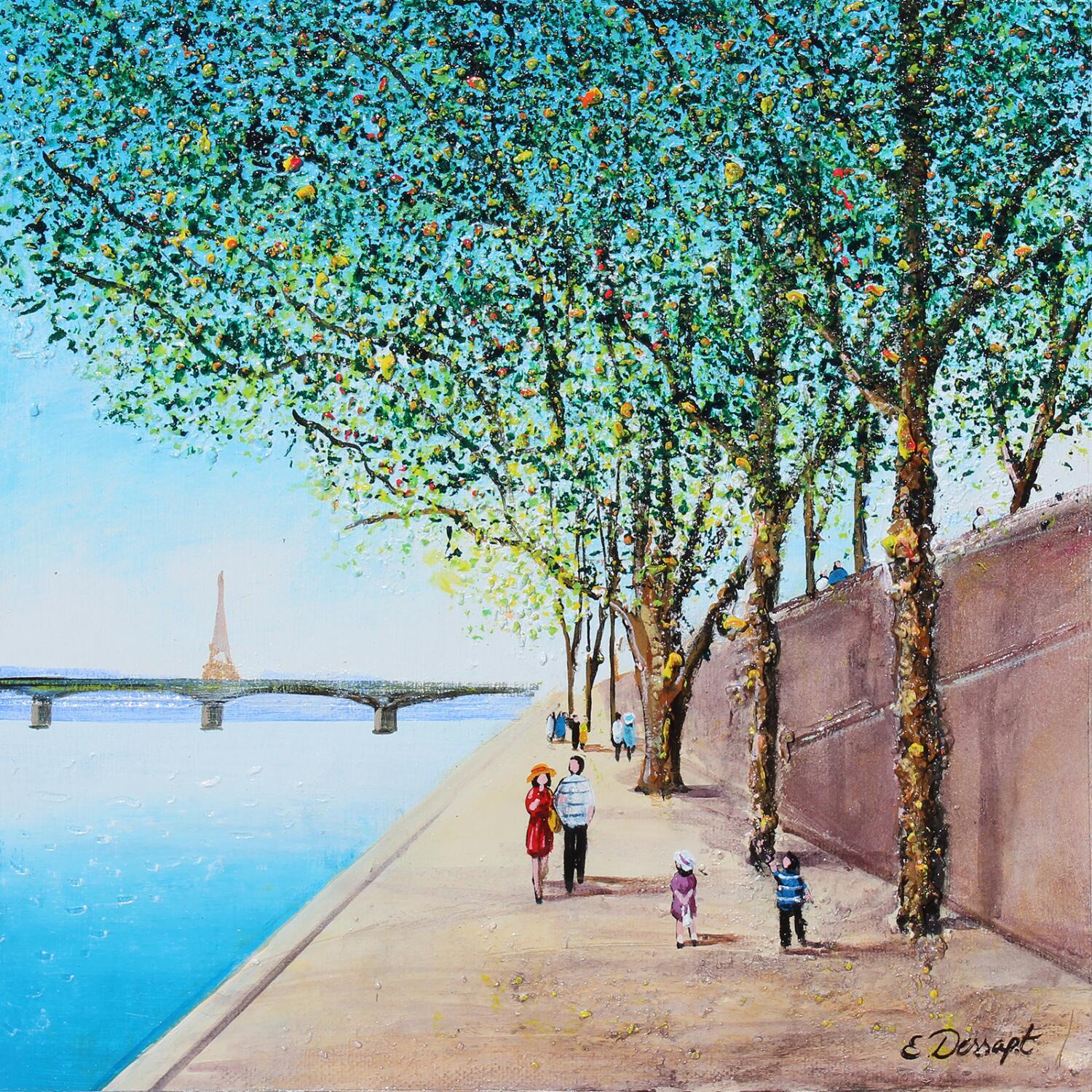 This unique and original contemporary artwork "Balade en famille à Paris" was created by contemporary artist Dessapt Elika.