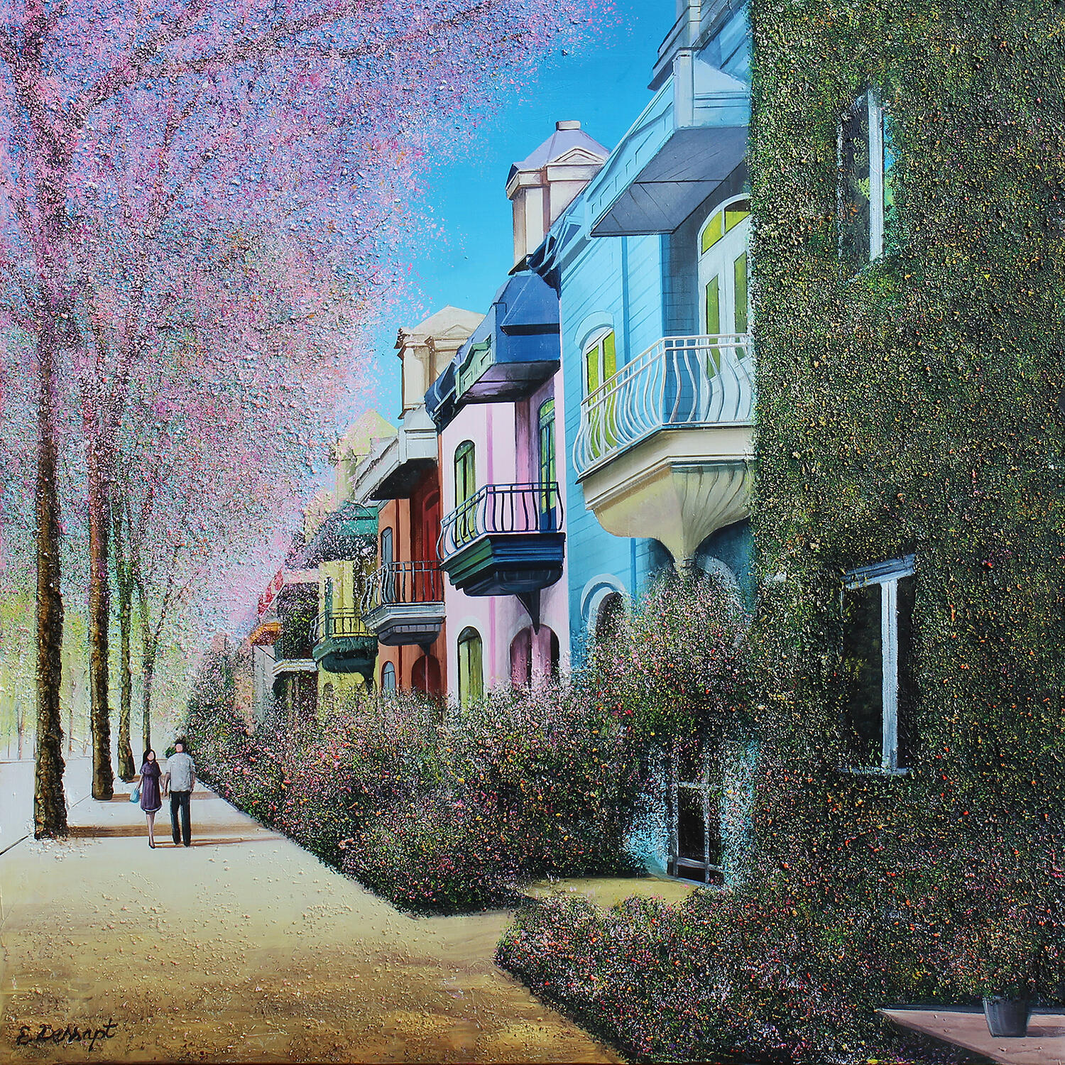 This unique and original contemporary artwork "Le chemin des cerisiers à Montréal" has been created by the contemporary artist Dessapt Elika.