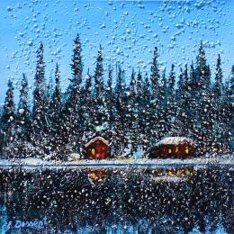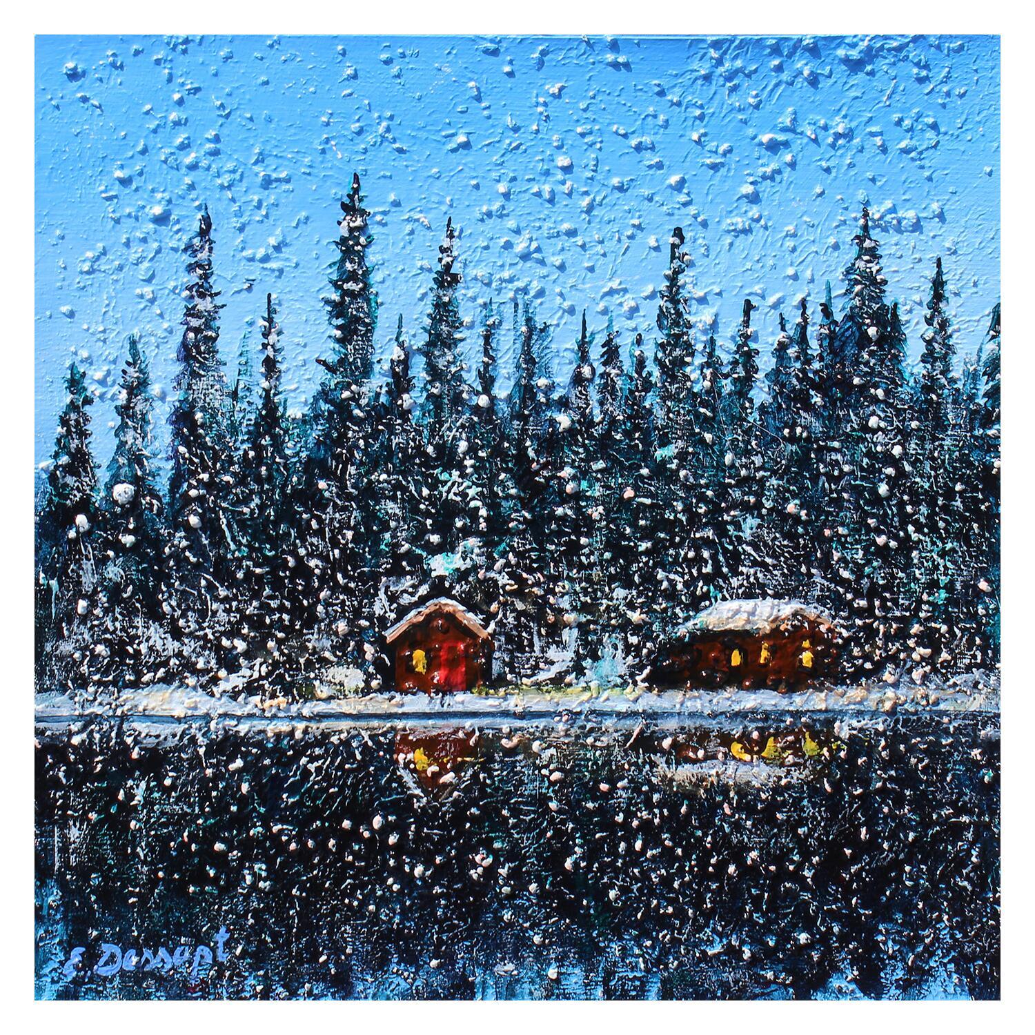 This unique and original contemporary artwork "A Night in the Canadian Forest" was created by contemporary artist Dessapt Elika.