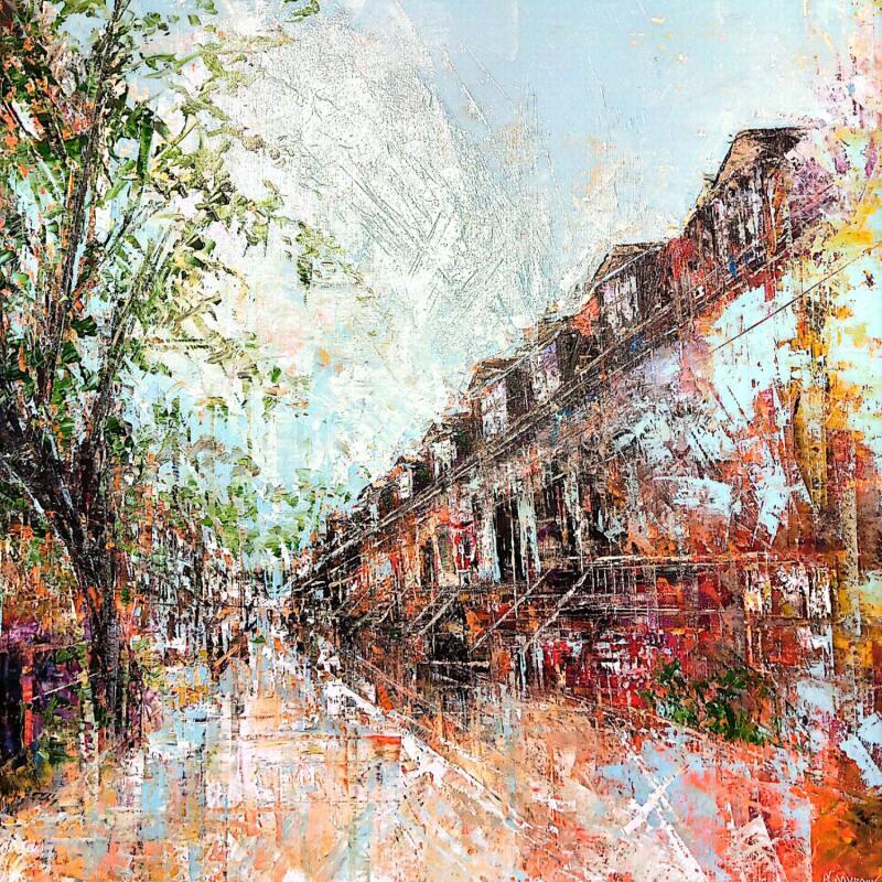 This unique and original contemporary artwork "Maison du plateau -Mont -Royal, couleur bleutée." has been created by the contemporary artist Davroux Philippe .