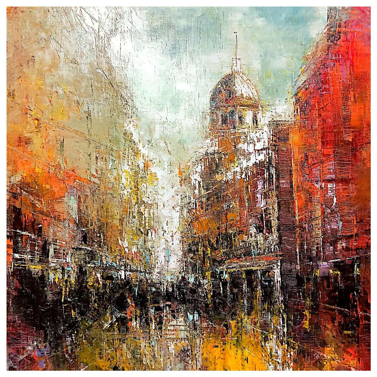 This unique and original contemporary artwork "rue saint Paul avec la tour, couleur orangée." has been created by the contemporary artist Davroux Philippe .