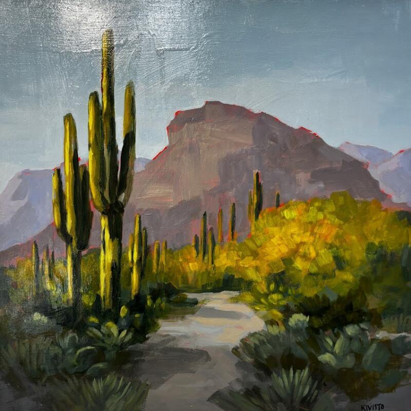 Jamie Kivisto is an American artist based in the Arizona desert. Her career began on the beaches of Venice Beach, where she sold her first canvases after studying art in Cincinnati. Self-taught to the core, she sees painting as a visual diary, a mirror of her inner transformations. Her work blends resilience, spirituality and connection to nature. Each work is a living, intuitive exploration rooted in human experience.