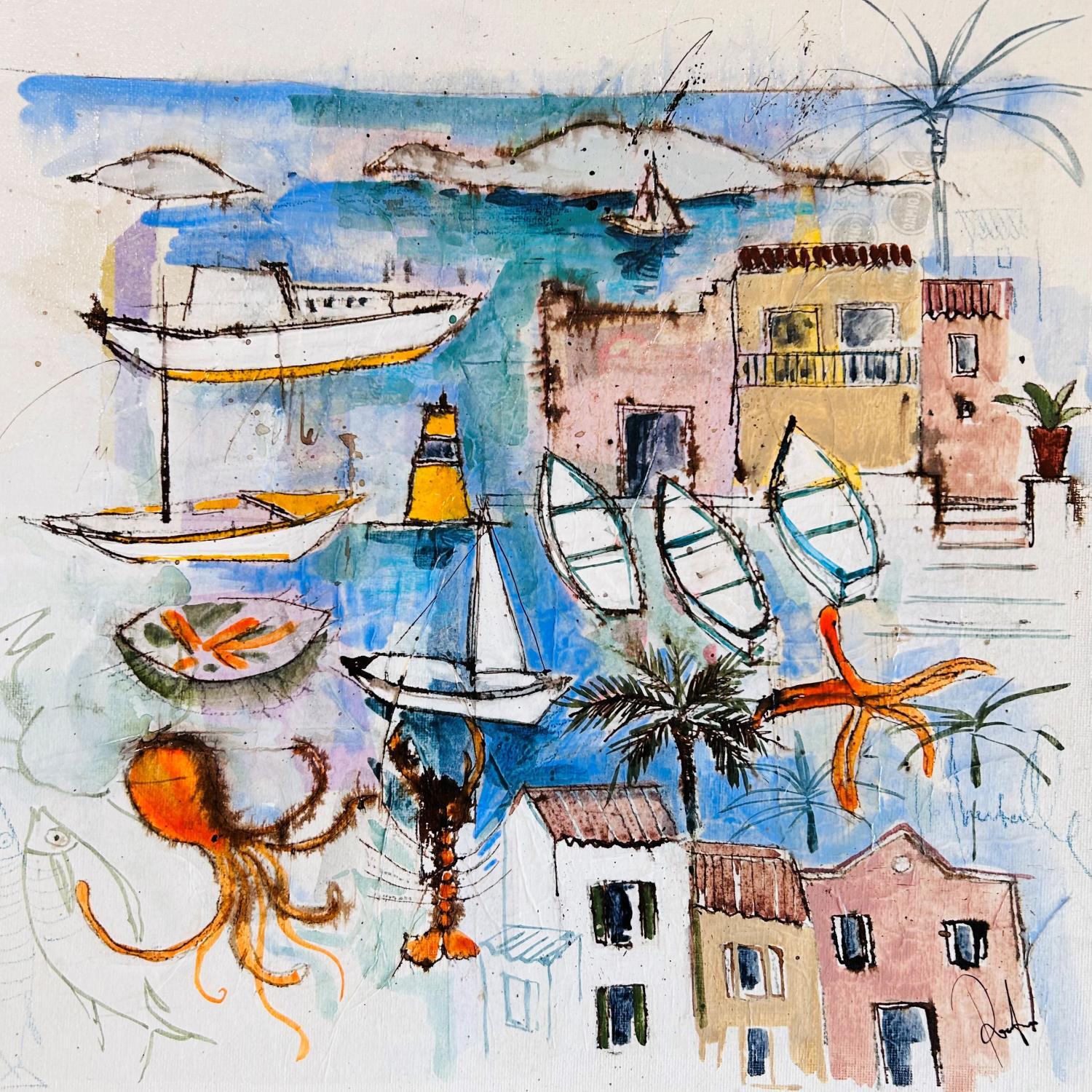 This unique and original contemporary artwork "Regard sur Malmousque" on the subjects of Marine, Nature, Landscapes has been created by the contemporary artist Colombo Cécile.