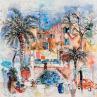 This unique and original contemporary artwork "Mosaïque et orangers" on the subjects of Nature, Landscapes, Life style has been created by the contemporary artist Colombo Cécile.